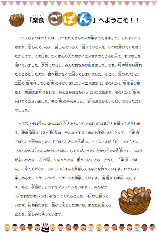 (毎月第3土曜日の「がくしょくごぱん」の申し込みも上記まで。)